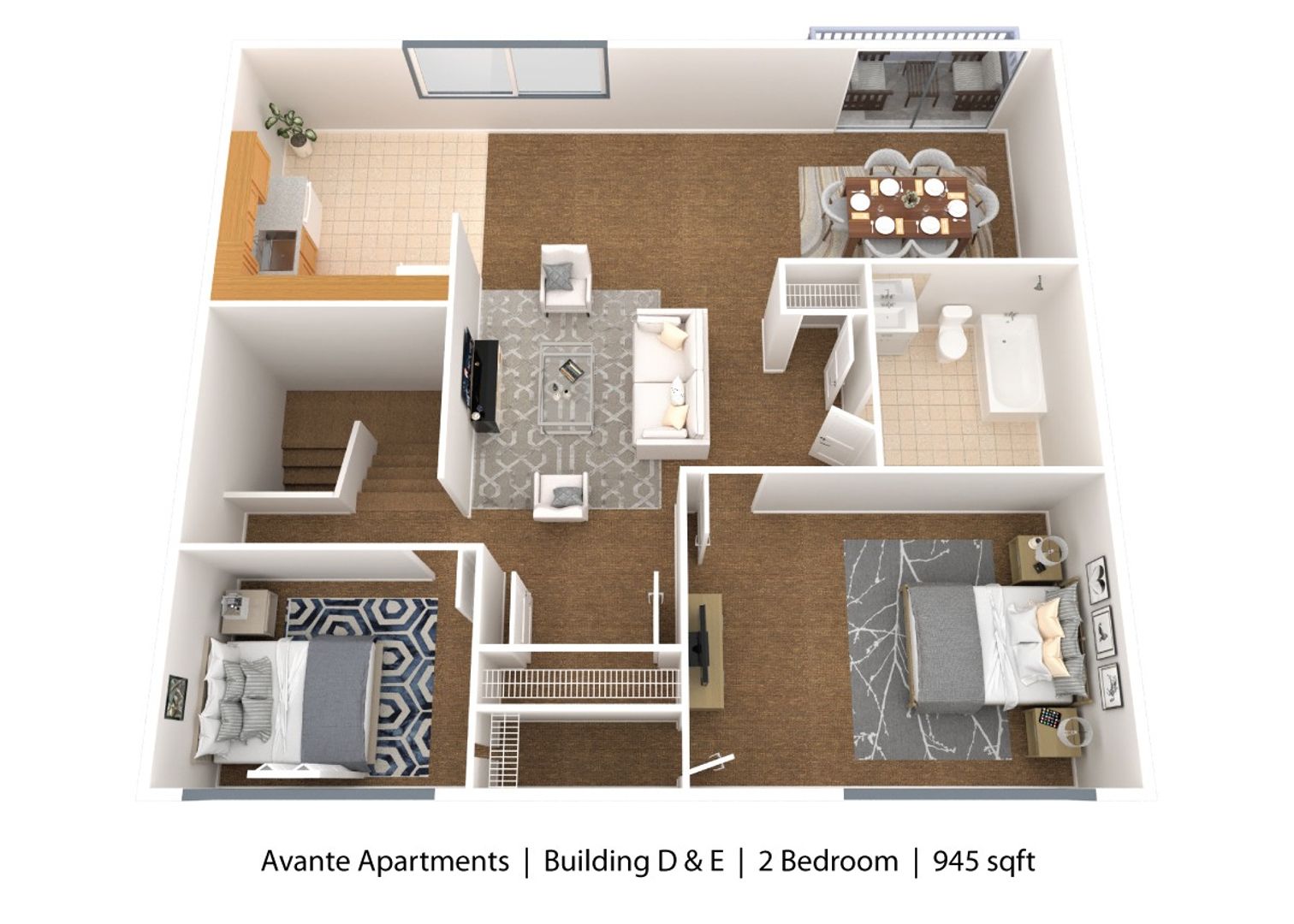 2 bedroom apartment with a beautiful view from your private patio